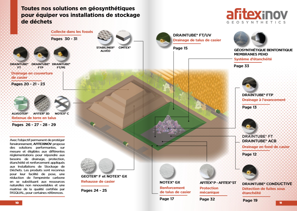 Pour vos besoins en drainage, étanchéité et renforcement sur vos installations de stockage de déchets, pensez à AFITEXINOV et toute sa gamme de géosynthétiques.